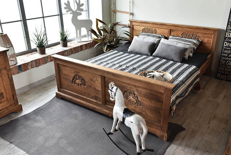 Jste náročný zákazník a toužíte po pořádném lůžku? Postel Jagna uspokojí vaše vysoké požadavky. S nákupem tohoto lůžka investujete do jedinečného kousku nábytku, který má velmi vysokou životnost. Na povrchovou úpravu byl použit zdravotně nezávadný olej v barvě medu, který zvýrazní nádhernou ručně vyřezávanou kresbu. Jagna je vhodná do tradičního interiéru, chaty či horské chalupy.