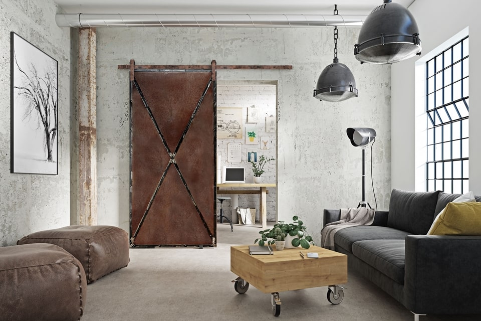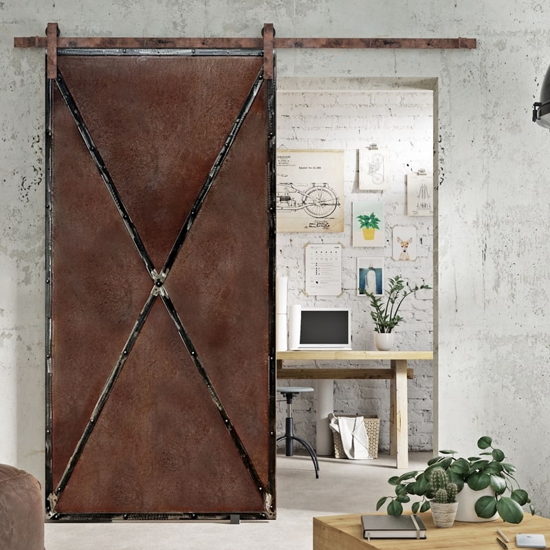 hlavním prvkem posuvných dveří Rusty Metal je záměrně zestárnutý plech