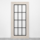Charakter dveří podtrhují černě práškově lakované kovové mříže - právě ty dodávají celku industriální vzhled a zároveň zpevňují konstrukci. Dveře plní nejen praktickou funkci, ale stávají se také výrazným dekorativním prvkem, ideálním pro interiéry v loftovém, skandinávském nebo rustikálním stylu.