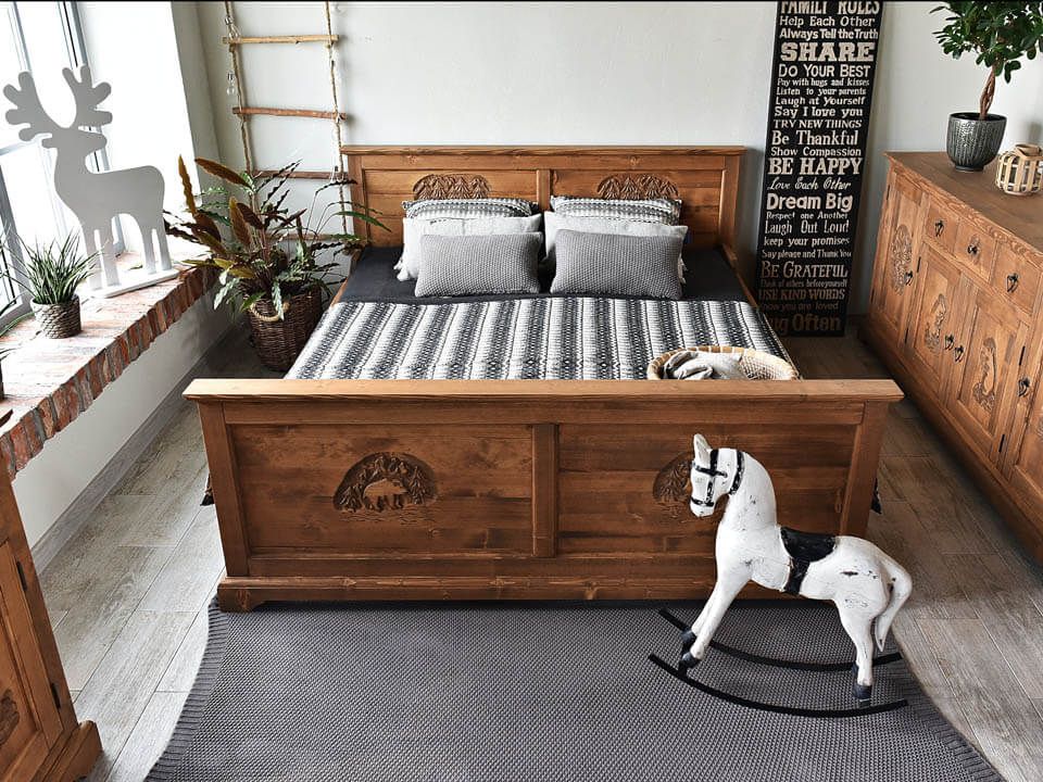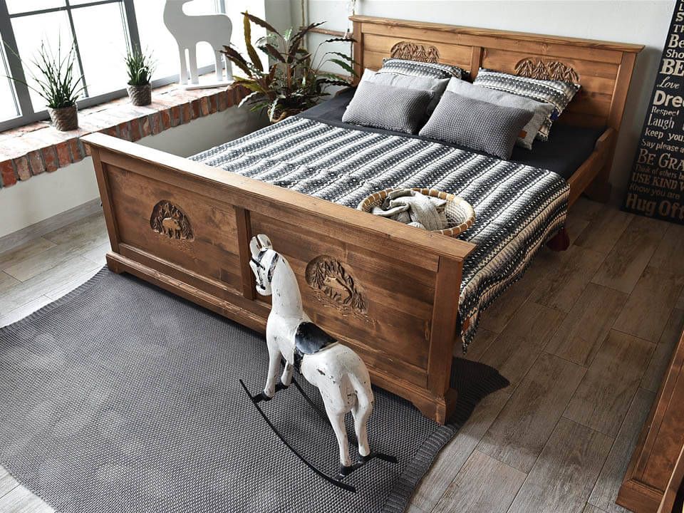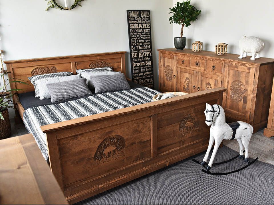 Plné přední i zadní čelo dodá lůžku pevnost a stabilitu, zatímco vyřezávané detaily a tvar zvyšují jeho tradiční charakter.